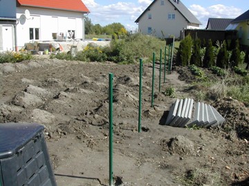Säulen für den Zaun sind auch schon gesetzt